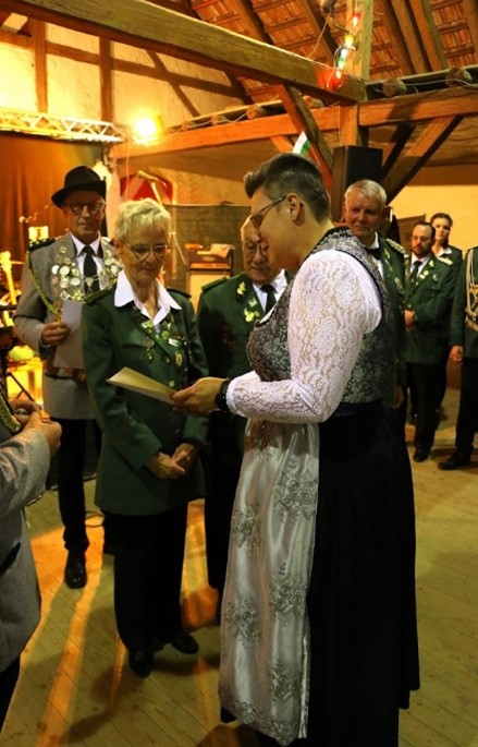 Auch Rebecca Kramer, 1. Gauschützenmeisterin, war vor Ort um unter anderen 3 Schützen auf Gymnich für 25 Jahre Mitgliedschaft im Schützenverein Artelshofen auszuzeichnen.